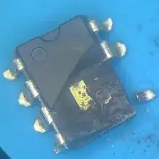 Using the precision tweezers to remove the sticker in the center of the top chassis.