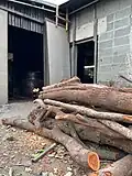 There are two main dyeing processes, one using a dye from the bark of the Techigi tree, and the other, mud. The Techigi tree is cut into chips and boiled down to a thick red liquid. The silk and cotton mats are first dyed in this dye turning them pink, and are then dyed repeatedly in the mud. The fabric goes from a light grey to a reddish brown, and finally to a rich, warm black. The tannin in the dye of the Techigi tree and the iron in the iron-rich mud react to create the black color, unique to Oshima Tsumugi.[15][16]