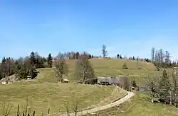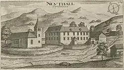 Next to the church can be seen the ruins of what was the Špitalič (Neuthal) Mansion. Part of the Carniolan estates held by the Counts of Andechs, the structure was originally a hospice offering shelter to the many travelers passing through the valley. It was built by the Andechs margrave Henry II of Istria about 1228, passing to Viktring Abbey circa 1251.[3] It was sold and converted into a mansion in 1608 and subsequently rebuilt a number of times.[7] The mansion was burned by the Yugoslav Partisans in January 1945.[3]