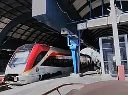 A contract for the purchase of 6 new passenger train sets, manufactured by China's CRRC Corporation at the Zhuzhou Electric Locomotive Works, was signed in 2014. The first train-set arrived in August 2015. Each train consists of 3 rail cars, and is designed to carry 200 passengers. They will be used on routes from Skopje to Bitola, Gevgelija, Kičevo, Kumanovo, and Veles.[2] This is the first time North Macedonia has bought new passenger trains since its independence,[2] and the first time a Chinese EMU or DMU manufacturer has entered the European market.[3]