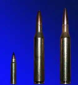 Charles Newton necked down the .30-06 Springfield cartridge in 1912 to accept a 117-grain .25-35 Winchester bullet,[3] but the resulting .256 Newton cartridge did not catch on. Newton's early modification encouraged commercial release of a shortened case (from 63 to 49 mm) as the .250-3000 Savage in 1915.[4] Frankford Arsenal developed an experimental .25-06 during World War I; and distribution of surplus United States military equipment through the Civilian Marksmanship Program following the war encouraged independent gunsmiths to experiment with the cartridge.[3] A. O. Niedner of Dowagiac, Michigan, introduced rifles for the .25 Niedner in 1920.[5] Niedner Arms Corporation retained the 17° 30′ .30-06 shoulder chambering .25 caliber barrels rifled with one twist in 12 inches (300 mm).[6] Similar cartridges were identified as the .25 Hi-Power, .25 Whelen (analogous to .35 Whelen), or .25-100-3000 (to indicate the ability to achieve 3,000 feet-per-second with a 100-grain bullet rather than the 87-grain bullet used in the .250-3000 Savage). Greater case capacity offered minimal velocity improvement over the .250-3000 Savage case with contemporary smokeless powders.[7] Availability of DuPont's Improved Military Rifle (IMR) powders encouraged commercial release of the .257 Roberts using the 57 mm Mauser case in 1934.[8] Release of IMR 4350 in 1940 and availability of surplus 4831 powder salvaged from Oerlikon 20 mm cannon cartridges after World War II greatly improved performance of the full-length .25-06 case.[9]