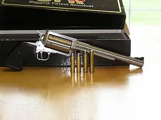 Despite being featured in many video games and action films as the weapon of choice for some members of elite military and law enforcement units, these guns in reality are used primarily for hunting, target shooting, and silhouette shooting.[3][4] Such military usage would be limited as a low-level anti-materiel weapon tasked with door breaching, shooting padlocks, or explosive ordnance disposal of unexploded ordnance, rather than combat.