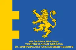 The 103rd Territorial Defense Brigade named after Metropolitan Andrey Sheptytsky (Ukrainian: 103-тя окрема бригада територіальної оборони імені митрополита Андрея Шептицького) is a military formation of the Territorial Defense Forces of Ukraine. It is part of Operational Command West. The brigade participated in the September 2022 Ukrainian offensive and the 2024 Ukrainian invasion of Kursk.