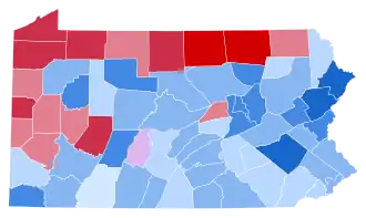 As of the 2024 presidential election, this is the only time Snyder County voted for a Democratic presidential candidate.[3] Lebanon County has voted for the Democratic presidential candidate once since, in 1936. Blair, Dauphin, and Philadelphia counties would not vote Democratic again until 1936, and Delaware County until 1964. Lancaster, Huntingdon, and Somerset counties have voted for a Democrat once since, in 1964.