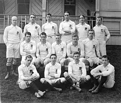 Ireland: MF Landers (Cork Constitution), Basil Maclear (Cork County), JE Moffatt (Old Wesley), GAD Harvey (Wanderers), HB Thrift (Dublin University), TTH Robinson (Dublin University), ED Caddell (Dublin University), Jos Wallace (Wanderers), Henry Millar (Monkstown), CE Allen (Derry) capt., A Tedford (Malone), HG Wilson (Malone), HJ Knox (Dublin University), JJ Coffey (Lansdowne), George Hamlet (Dublin University)