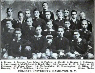 - ^ "Colgate, 13; Cornell, 7: Ithacans Show Less Football Than Their Little Adversaries". The New York Times. September 12, 1912. p. Sports 3 – via Newspapers.com.