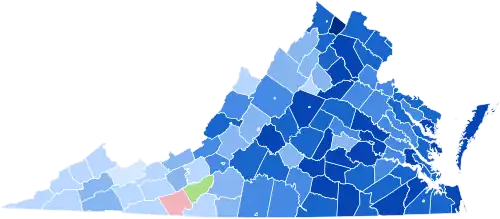 Ultimately Wilson won Virginia by 48.96 percentage points over Taft, with Roosevelt a close third. Wilson carried all but two counties, and won the largest popular-vote victory in Virginia since Andrew Jackson in 1832 — although Franklin D. Roosevelt would three times exceed his popular vote percentage. Wilson ultimately won the national election with 41.84 percent of the vote. As of the 2024 presidential election, this is the last election in which Floyd County did not vote for the Republican candidate.[7]