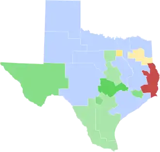 O'Daniel: 20–30% 30–40% 40–50% 50–60% Johnson: 30–40% 40–50% 50–60% 60–70% 70–80% >90% | |||||||||||||||||||||||||||||||||||||