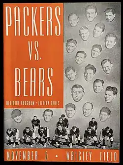 The 1944 season was the third full competition that coincided with World War II. The rosters of many teams were becoming depleted after players were drafted or volunteered for service.[13] The Bears–Steelers game program read, "The big, bad Chicago Bears may not be as ferocious this year as they have been in the past, but if a popularity contest were to be held by pro football followers throughout the country, they would still vote the Bears the most appealing team."[9]