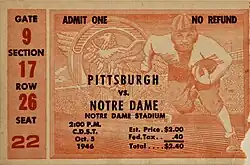 - ^ Costin, Jim (October 5, 1946). "Irish Favored to Win Easily Against Pitt". The South Bend Tribune. p. 1. Retrieved October 18, 2023 – via Newspapers.com.