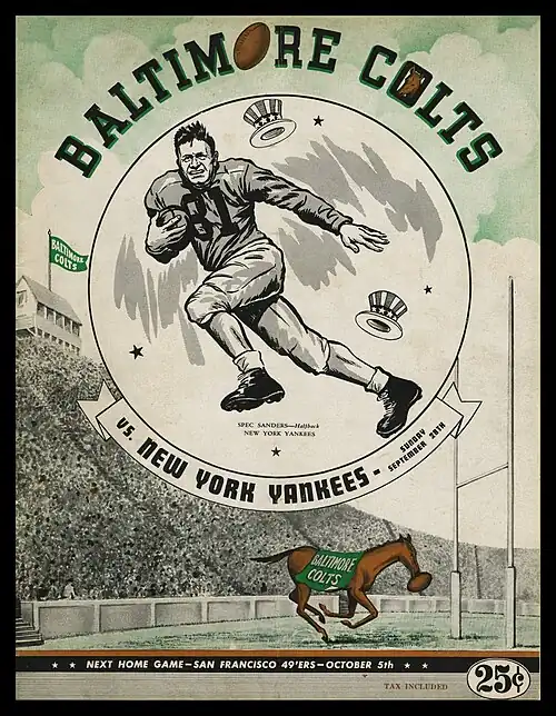 - ^ Baltimore Colts vs. New York Yankees, Sunday, September 28th. Baltimore, MD: Baltimore Colts Football Club, Inc., 1947; pp. 16–17.