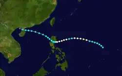Olga formed in the South China Sea on October 16. It moved west and dissipated on October 19.