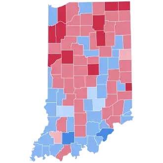 | Vanderburgh | 27,584 | 45.25% | 32,640 | 53.55% | 391 | 0.64% | 190 | 0.31% | 151 | 0.25% | -5,056 | -8.30% | 60,956 |