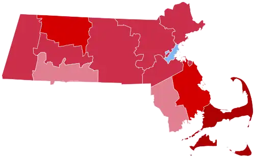 To date, this is the last time that the cities of Everett, Holyoke, Lynn, Malden, Medford, New Bedford, Newton, North Adams, Northampton, Pittsfield, Randolph, Salem, Somerville, Springfield, Winthrop, and Worcester and the towns of Adams, Arlington, Brookline, Montague, Provincetown, Sharon, Sunderland, and Watertown voted Republican.