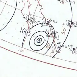 The tenth known storm of the season was identified on October 1 several hundred miles southwest of the tip of the Baja California Peninsula. Maximum winds observed during the storm's existence reached 85 mph (135 km/h); however, no air pressure was recorded. Initially tracking westward, the system turned northwest and later northeast by October 3. After a brief acceleration on October 4, the hurricane slowed as it neared the coastline of Baja California. Early on October 5, the storm crossed the Peninsula as a Category 1 hurricane before entering the Gulf of California. The hurricane made another landfall near Navojoa, Mexico later that day. Rapid weakening took place as the storm moved over the high terrain over northern Mexico. Early on October 6, the system transitioned into an extratropical cyclone over New Mexico before dissipating several hours later.[2]