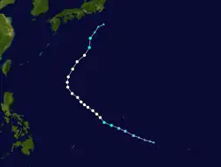 Typhoon June existed from September 20 to September 22. Its track was somewhat similar to Hurricane Patsy in the 1959 Pacific hurricane season.