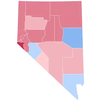 | Washoe | 23,492 | 54.65% | 14,560 | 33.87% | 4,936 | 11.48% | 8,932 | 20.78% | 42,988 |