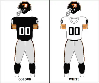 The Lions introduced a new jersey which featured orange "ti-cat" stripes down the arms of home and away jerseys. As well, the Lions went to grey pants which they would wear for the next eight seasons. The "BC" on the lion's cheek was black for only this season; all other seasons it was white because it showed up better on television.