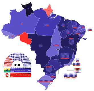 Parliamentary elections were held in Brazil on 15 November 1970.[1] The result was a victory for the National Renewal Alliance Party, which won 223 of the 310 seats in the Chamber of Deputies and 40 of the 46 seats in the Senate. Voter turnout was 77% in the Chamber of Deputies election and 78% in the Senate election.[2]