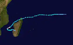 Fabienne existed from February 11 to February 25. On February 18, Fabienne passed just west of Rodrigues, producing wind gusts of 254 km/h (158 mph). The storm caused two fatalities on the island, as well as 16 injuries.[4][5][6]