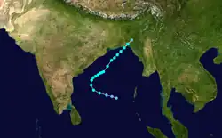 The 1975 North Indian Ocean cyclone season was at the time, the most active cyclone season on record until it was beaten out 12 years later. The season has no official bounds but cyclones tend to form between April and December. These dates conventionally delimit the period of each year when most tropical cyclones form in the northern Indian Ocean. There are two main seas in the North Indian Ocean—the Bay of Bengal to the east of the Indian subcontinent and the Arabian Sea to the west of India. The official Regional Specialized Meteorological Centre in this basin is the India Meteorological Department (IMD), while the Joint Typhoon Warning Center (JTWC) releases unofficial advisories. An average of five tropical cyclones form in the North Indian Ocean every season with peaks in May and November.[1] Cyclones occurring between the meridians 45°E and 100°E are included in the season by the IMD.[2]