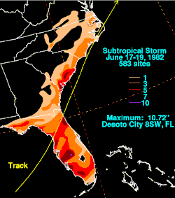 - ^ a b David Roth (2006). "Rainfall Totals: Subtropical Storm One (1982)". Hydrometeorological Prediction Center. Retrieved 2007-03-28.