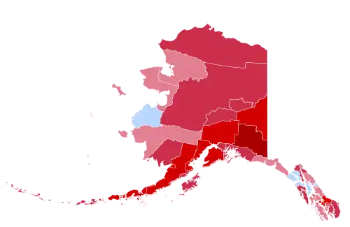 Alaska was won by incumbent President Ronald Reagan (R-California) with almost two-thirds of the popular vote against Walter Mondale (D-Minnesota) with 29.9%.[1] Reagan ultimately won the national vote, winning re-election. Alaska has only voted Democratic once, in 1964 for Lyndon B. Johnson. Libertarian candidate David Bergland also had his best performance in this state, but did not receive nearly as much support as Ed Clark did in the previous election four years earlier.[2]