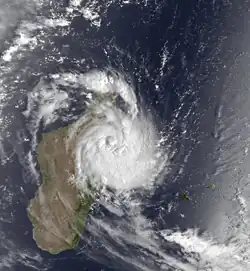 During the season, the Météo-France office (MFR) on Réunion island issued warnings in tropical cyclones within the basin. Using satellite imagery from National Oceanic and Atmospheric Administration, the agency estimated intensity through the Dvorak technique, and warned on tropical cyclones in the region from the coast of Africa to 90° E, south of the equator. The World Meteorological Organization recognized the MFR as a Regional Tropical Cyclone Advisory Centre in 1988, and would later label the agency as a Regional Specialized Meteorological Center in 1993.[1] The Joint Typhoon Warning Center (JTWC), which is a joint United States Navy – United States Air Force task force, also issued tropical cyclone warnings for the southwestern Indian Ocean.[2] The season's nine named storms is equal to the long term average, while the five tropical cyclones – a storm attaining maximum sustained winds of at least 120 km/h (75 mph) – was slightly below average.[3] The MFR considered the tropical cyclone year to begin on August 1 and continue to July 31 of the following year.[1]
