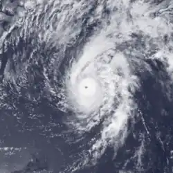 Otis originated from the a tropical disturbance embedded in the monsoon trough. It moved over the warm waters south of the Mexican Riviera from September 17 to September 19. At 0000 UTC September 20, the disturbance was upgraded into Tropical Depression Nineteen-E while moving to the northwest.[5] It strengthened into a tropical storm later that day while located 950 mi (1,530 km) southwest of La Paz.[3] Eighteen hours later on September 21, Otis intensified into a hurricane.[5] It also began to turn back to the west and began to undergo a period of rapid deepening. On September 22, Otis reached its peak windspeed of 115 mph (185 km/h).[5] It would oscillate irregularly between that strength and Category 2 intensity until September 24.[3] That day, it began accelerating to the west as it lost strength due to increased wind shear and decreasing ocean temperature.[5] Otis fell to tropical storm strength on September 25 and a depression on September 26, and dissipated shortly after that.[3]