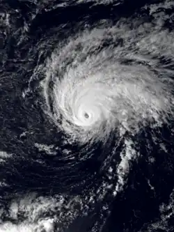 A tropical disturbance left Central America on September 8. At 1200 UTC on September 9, a tropical depression formed over the warm waters south of the Gulf of Tehuantepec.[5] While located 935 mi (1,505 km) from Cabo San Lucas, the depression intensified into a tropical storm and was named Max.[3] Tracking west-northwest, Max rapidly intensified and became a hurricane on September 11, over a day after it was named.[5] Turning northwest, Max continued to intensify. By September 10, the cyclone reached Category 2 intensity, and became a major hurricane several hours later. On September 12, Hurricane Max reached Category 4 intensity. The cyclone reached its maximum windspeed of 155 mph (250 km/h) on September 13.[3] Around that time, a then-record was set for the highest satellite estimates for a Pacific hurricane.[26] Dvorak classifications—used to estimate a tropical cyclone's intensity—were at T7.0/160 mph (255 km/h), the highest ever recorded in the basin,[5] though this was later matched by hurricanes Hernan and Trudy of the 1990 Pacific hurricane season.[26][27]