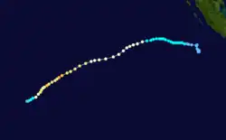 | Peak intensity | 150 km/h (90 mph) (10-min); 955 hPa (mbar) |