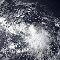 Signs of organization were evident late on August 2 when the wave was south of the Gulf of Tehuantepec. Then, on August 4, Tropical Depression Eight-E was formed while centered 350 mi (560 km) south-southeast of Acapulco. Despite the presence of easterly shear, the depression gradually intensified as the center moved toward the west-northwest, paralleling the coast of Mexico. Then, it reached tropical storm strength the same day. At that time, it was centered south-southwest of Acapulco. It peaked on August 5 with a central pressure of 993 mbar (29.3 inHg) and maximum sustained winds of 75 mph (121 km/h) while 255 mi (410 km) of Manzanillo, Colima. After its peak, Guillermo weakened to tropical storm status as it began losing convection. It subsequently weakened to a tropical depression and dissipated after that on August 10.[23] There were no damages or casualties associated with this tropical cyclone.[24]