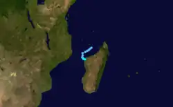 | Dessilia | January 16–24 | Severe Tropical Storm | 95 km/h (60 mph) | 975 hPa (28.79 inHg) | Juan de Nova Island, Madagascar | |||