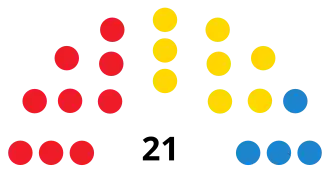 The following table lists party control in the Island Cabildos.[1] Gains for a party are displayed with the cell's background shaded in that party's colour.