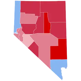 | Elko | 4,541 | 28.35% | 10,969 | 68.47% | 509 | 3.18% | -6,428 | -40.12% | 16,019 |
