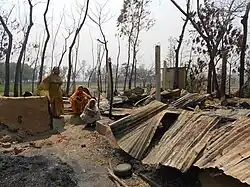 ![]() Hindu women in Banshkhali Upazila surveying the remains of their demolished homes after being attacked by the Bangladesh Jamaat-e-Islami. | |