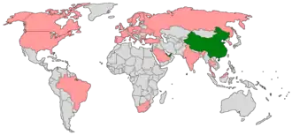Countries that hosted F1 Powerboat races in 2014, shown in green. Former host nations are shown in pink.