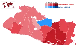 Presidential elections were held in El Salvador on 2 February 2014,[1] with a second round held on 9 March since no candidate won an outright majority.[2] The primary candidates were Vice-President Salvador Sánchez Cerén of the FMLN, San Salvador Mayor Norman Quijano of ARENA, and Former President Antonio "Tony" Saca.[3] Saca represented GANA, the National Conciliation Party, and the Christian Democratic Party in the UNIDAD coalition. Incumbent President Mauricio Funes was ineligible to run for a consecutive second term.[4] Sánchez Cerén and Quijano emerged as the contestants in the runoff held on 9 March in which Sánchez Cerén was declared the victor.[5]