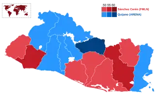 - ^ a b c d Antonio Merala. "Data Research: Sánchez Cerén 29.2%, Saca 27.8%, Quijano 27.4%". La Página (in Spanish). Archived from the original on 23 August 2013. Retrieved 11 July 2022.