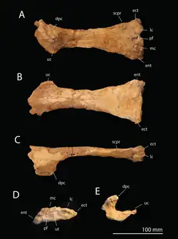 - ^ Gregory F. Funston; Elizabeth Martin-Silverstone; Philip J. Currie (2017). "The first pterosaur pelvic material from the Dinosaur Park Formation (Campanian) and implications for azhdarchid locomotion". FACETS. 2: 559–574. doi:10.1139/facets-2016-0067.