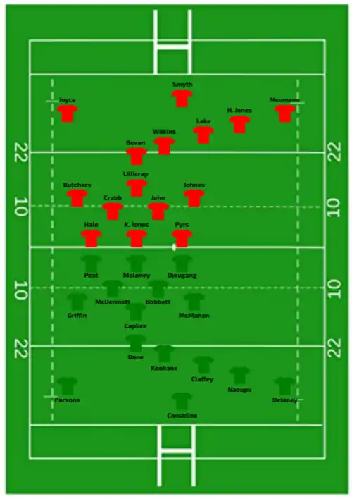 | 14:00 GMT (UTC±00:00) | Try: H. Jones 37' c K. Jones 64' m Con: Wilkins (1/2) 38' Pen: Wilkins (1/1) 3' |