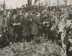 Shortly after the regiment's arrival in France, they were informed that they would be sent to serve in Italy instead.[1] They arrived there in July 1918 in response from an urgent request from the Italian Government. In addition to the American infantry force, 30 American ambulance sections, a base hospital, and 54 airplane pilots also served with the Italian Army. The American pilots, as members of the Italian bombardment squadrons, engaged in bombing raids behind Austrian lines, being especially active during the progress of the Vittorio Veneto offensive.[2]