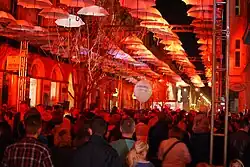 In autumn 2014, the Light Move Festival visited the courtyard on 6 Sierpnia Street for the first time (4th edition from October 10 to 12). A light arrangement named Philips Brothers Street was presented, and a light painting competition was organized by the Łódź Lux Pro Monumentis Foundation.[93] The event returned in 2015 (5th edition, from October 9 to 11)[94] and 2017 (7th edition, from September 29 to October 1).[95][96]