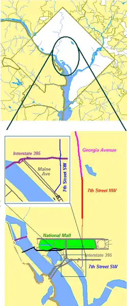 - ^ "7th Street SW and NW" (Map). Google Maps. Retrieved March 3, 2019.