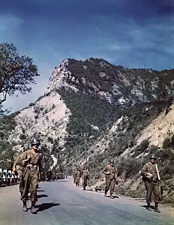 The 88th Infantry Division arrived at Casablanca, French Morocco on 15 December 1943, and moved to Magenta, Algeria, on 28 December for intensive training. Destined to spend the war fighting on the Italian Front, the division arrived at Naples, Italy on 6 February 1944, and concentrated around Piedimonte d'Alife for combat training. The 88th Infantry Division, along with the 85th Infantry Division, were the first United States Army divisions composed essentially entirely of draftees to enter combat. An advance element went into the line before Monte Cassino on 27 February, and the entire division relieved the battered British 46th Infantry Division along the Garigliano River in the Minturno area on 5 March. A period of defensive patrols and training followed. The 88th formed part of Major General Geoffrey Keyes's II Corps, part of the U.S. Fifth Army, under Lieutenant General Mark W. Clark.