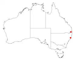 It is endemic only in a small area around Mount Maroon in the Mount Barney National Park in south eastern Queensland to the south of Boonah where it is found at elevations of around 900 m (3,000 ft) on rocky slopes and in crevices growing in thin sandy-loam soils as a part of heathland communities.[2] It is mostly found in pockets of soil found in the crevices of the rocks.[1]