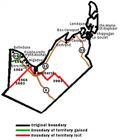 Census subdivision(s)Tracadie, Bathurst, Belle-Baie, Caraquet, Hautes-Terres, Île-de-Lamèque, Shippagan, Rivière-du-Nord, Belledune, Pabineau