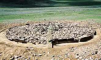 Afanasyevo burial at Khuurai Gobi 1, Bayan-Ölgii Province, western Mongolia, circa 3000 BCE.[19][20]