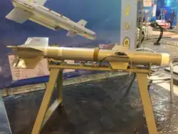 Akhgar missile (Persian: موشک اخگر) is an Iranian drone-launched air-to-ground missile operated by the Islamic Republic of Iran Air Force.[1] This Unmanned aerial vehicle weapon, which is among the newest missiles of Iranian drones, has a range of 30 km,[2] its weight is twenty seven kg and its maximum speed is 600 kilometers per hour.[3][4]