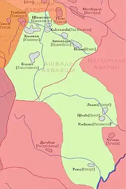 The Akvakh live in the Akhvakhsky District of Dagestan between the Avar and Andi Rivers. In 1926 they numbered 3,683. The Akhvakhs are mainly Sunni Muslims.[2] They adopted the religion by the 16th century due to the influence of Sufi missionaries.[3] They face continued assimilation by the Avars. By the early 1990s it was estimated that about 8,000 people were Akhvakh, although this number includes those who have been fully assimilated as Avars but still recognize that they have Akhvakh ancestry.